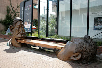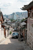 On a été visité hier un quartier dans lequel se trouve encore quelques maison typique coréenne. C'est vraiment beau et comme je m'imaginais. On est passé par une rue vraiment trippante, hyper design rempli de building tous plus intéressant les uns que les autres et avec des terrasses vraiment belles. (Ce sont les premières que l'on voit!) Celà fait changement des buildings en béton qui sillonnent la ville un peu partout. On y a même croisé une sculpture intitulé "mangez le biscuit" qui est en fait un banc...